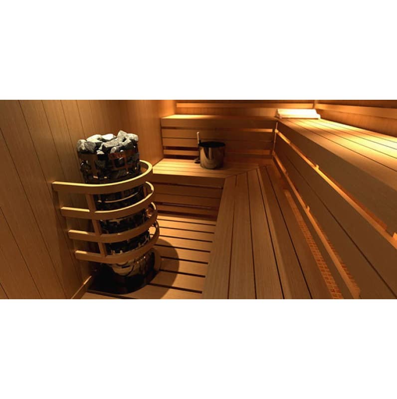 - Эффективность: Быстрый нагрев воздуха благодаря трем мощным ТЭНам, равномерное распределение тепла в сауне;